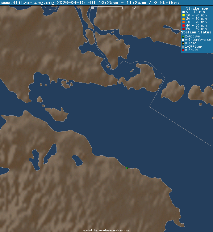 These lightning detectors are hobbyist grade and are not intended for safety or legal purposes. The Blitzortung network localization is to within a few kilometers. Some strikes may not be detected due to the very few US stations in the network.